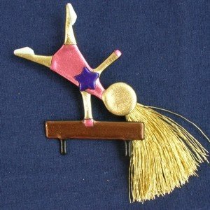 This gymnast wild women pin is handmade of fused acrylic resin. They are made one at a time with each piece individually hand cut. Wild Women Pins make people happy. They are wonderful, affordable, handmade in America, and generally a must have.The gymnast wild women pin shows a girl in the air. Her outfit is pink with a purple star.Note: These pins can be custom made for no additional charge to reflect your teams colors. A banner can also be put in the other hand and you can personalize. Min. 10 pieces for a custom order.
